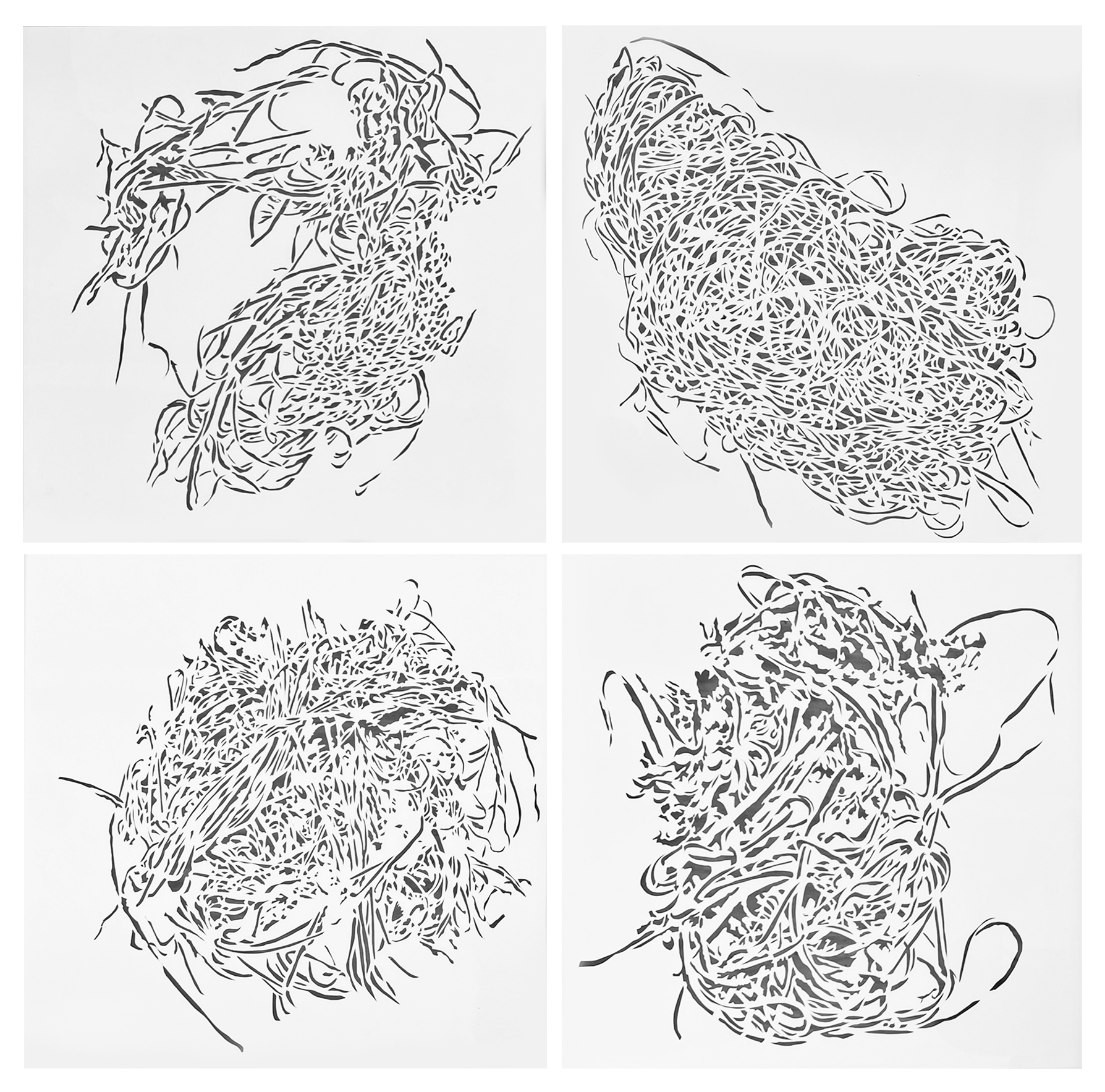 Cutout q 1-4, Papier, . 40×40 cm, 2025 White Object 1-4, Papier, ca. 20x20x20cm, 2024 Wolkenkukuksheim, Cutout, 70x70cm, 2023 Die zweite große Rolle, 400x150cm, 2021 Die zweite große Rolle, 400x150cm, 2021 shut up 1-2, Cutout, 80x50cm, 2023 Schaufensterinstallation, Into The White, 2020 Große Rolle, 450x150cm, 2018 Bonnerplatz 2 und 4, Foto, Cutout/Lichtkasten, 60x40cm, 2018 Aulichter 1-3, 100x70cm, 2020